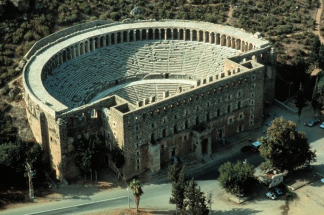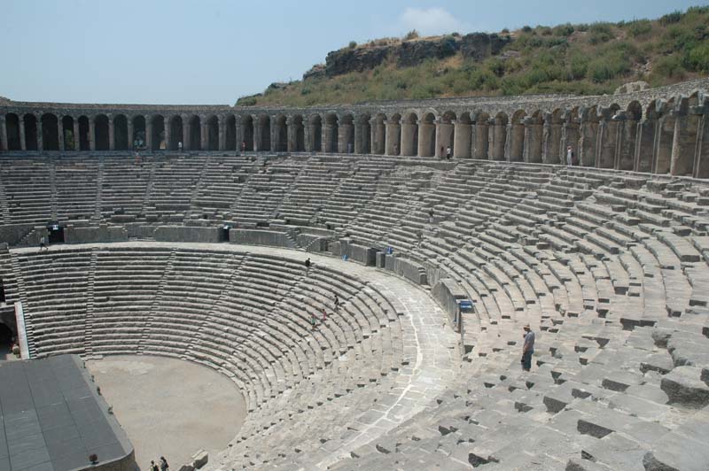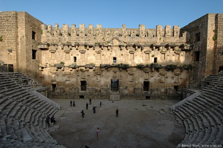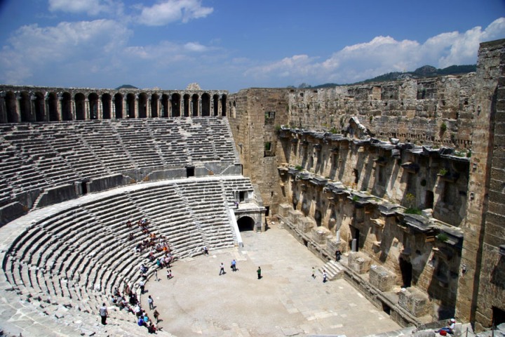 Aspendos whose another name is Belkis has been settled on a crossroad junction at 42 km away from Antalya to direction of Alanya. Its worwide famous amphitheater is the sole unbroken Archaic construction of this settlement. This theater has been costructed in 161 -181 years A.C. in the period of the emperors Antoninus and Licus Vicerus and it is has been located on the East side of Aşir hill. The architect of this 1500 person capacity magnificent building has been Zenon the son of Theodoros. There are some achaducs which have partially been remained like theater and they fascinates the people visiting here.